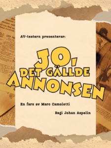 Söndag 22.2 kl. 15. Föreningen bjuder medlemmarna på en jubileumsföreställning av AV-teaterns ”Jo, det gällde annonsen”.
